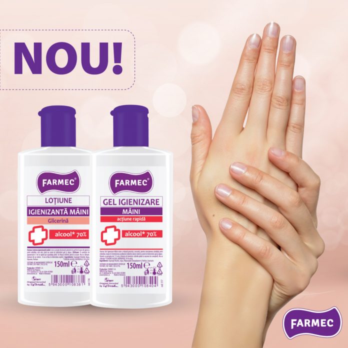 Primul dezinfectant produs pentru uz personal pe bază de alcool este Farmec loțiune dezinfectantă mâini, având o acțiune rapidă și fiind recomandat pentru utilizări frecvente. Produsul este disponibil în trei variante: 150 ml, 3 l și 5 l.
