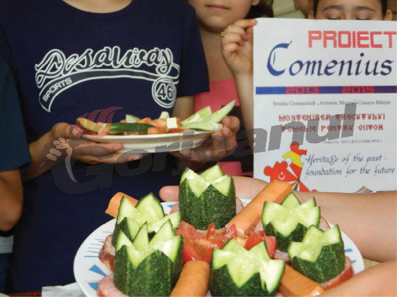 Şcolii Gimnaziale „Antonie Mogoş” Ceauru-Băleşti, prof. Cornel Şomîcu. Astfel de activităţi vor continua, elevii urmând să pregătească şi alte specialităţi culinare specifice, pe care le vor prezenta partenerilor polonezi, turci şi spanioli.