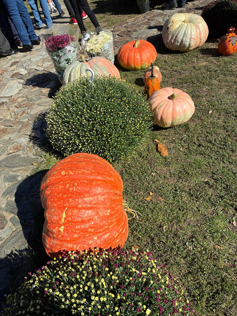 Ea nu a venit doar cu dovleci, ci și cu un ceaun de fasole care a fost golit repede de pofticioși, mai ales că mâncarea a fost asezonată repede cu turtă în țest și cu murături proaspete din această toamnă.