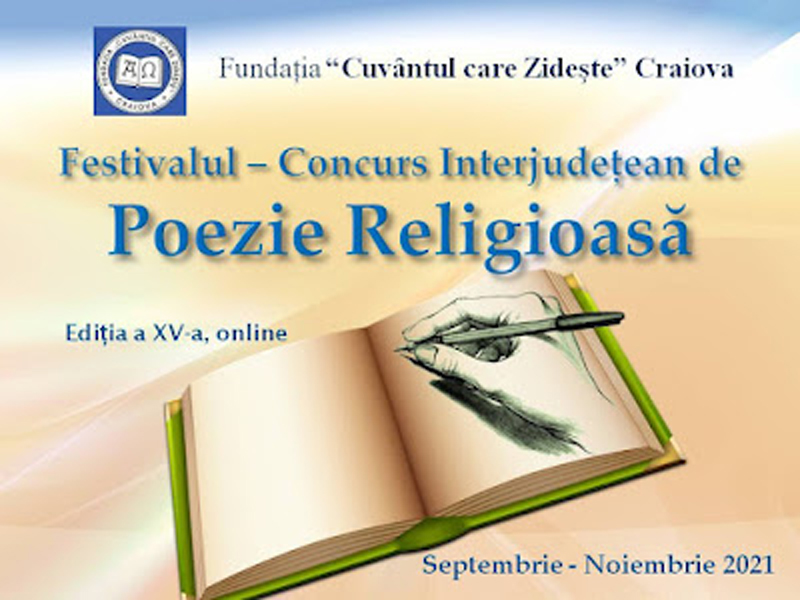 Fundația „Cuvântul care Zideşte” organizează, în perioada septembrie – noiembrie 2021, ediția a XV-a a Festivalului Concurs Interjudețean de Poezie Religioasă. Tema concursului din acest an este „Credința – atâta liniște, atâta culoare!”, iar data limită pentru înscriere este 22 octombrie 2021.