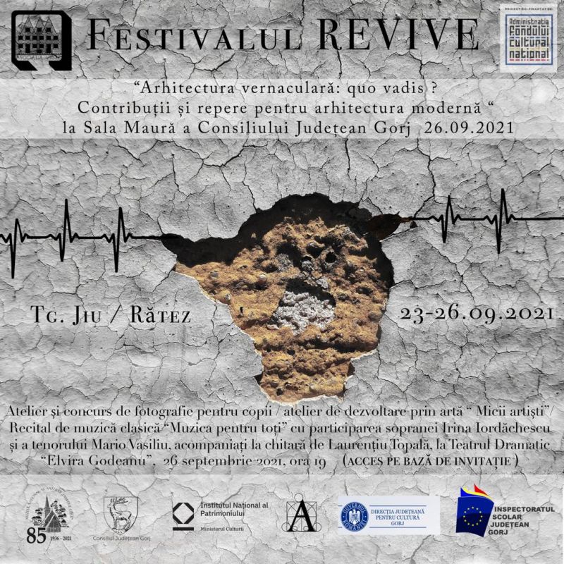 Asociația Culturală VICTE organizează în Gorj, în perioada 23-26 septembrie, Festivalul Revive. Acesta va avea loc în satul Rătez din comuna Godinești și în orașul Târgu-Jiu.