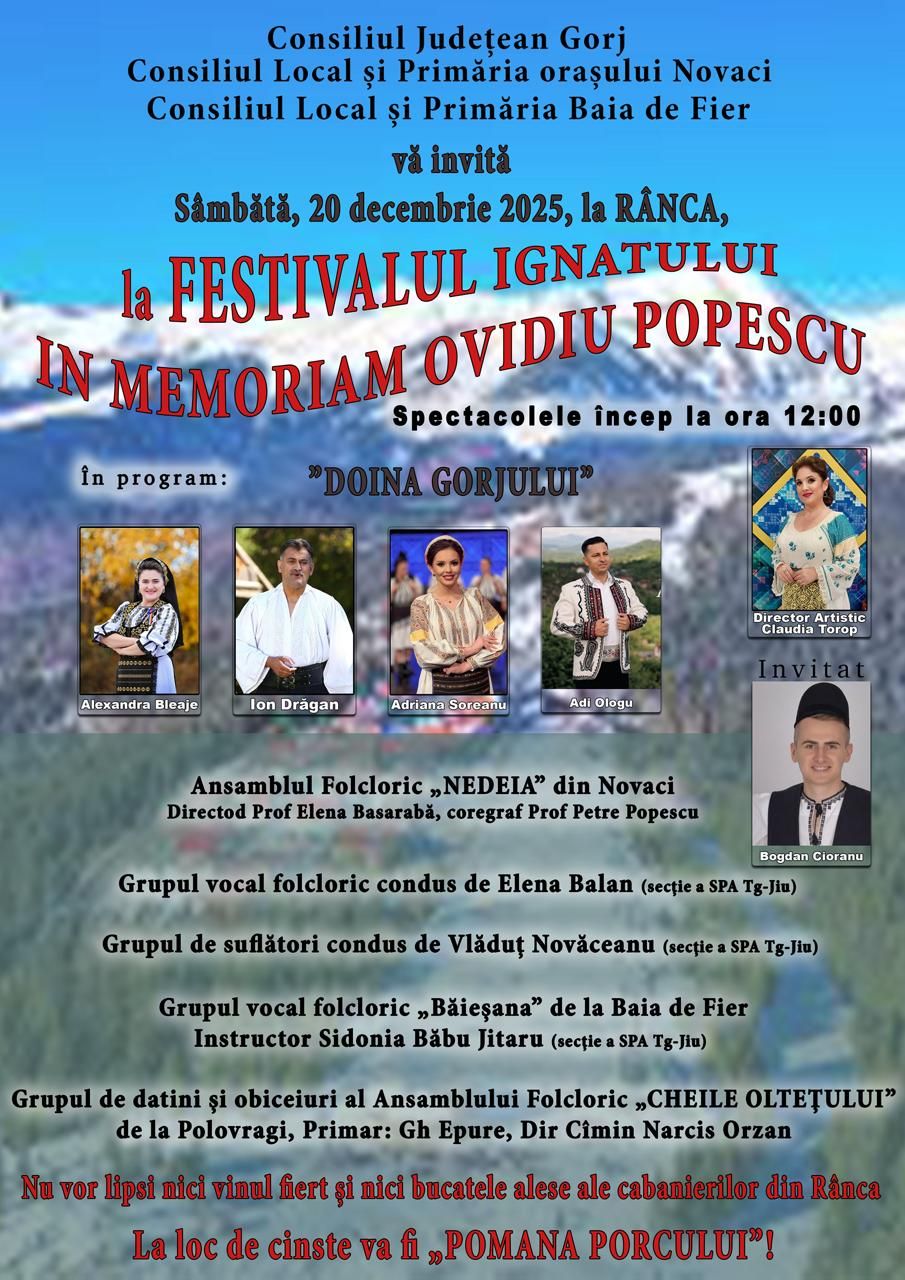 O nouă ediție a Festivalului Ignatului va avea loc sâmbătă, 20 decembrie, la Rânca.