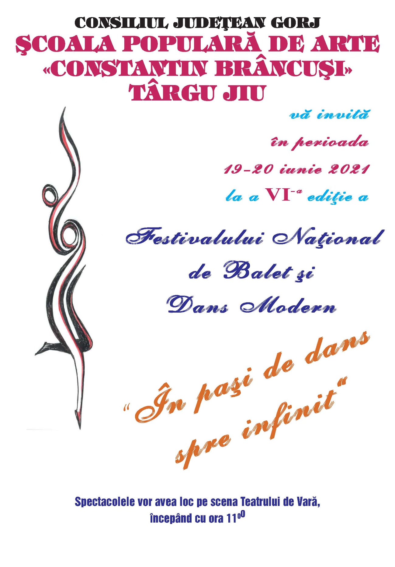 La sfârșitul săptămânii trecute, la Târgu-Jiu, s-a desfășurat cea de-a VI-a ediție a Festivalului de Balet și Dans modern ”În pași de dans spre Infinit”, organizat de Școala Populară de Arte ”Constantin Brâncuși”. Anul acesta, trofeul secțiunii balet a fost adjudecat de o clujeancă, în timp ce trofeul secțiunii dans modern a rămas în Gorj. Redăm mai jos palmaresul complet al festivalului: