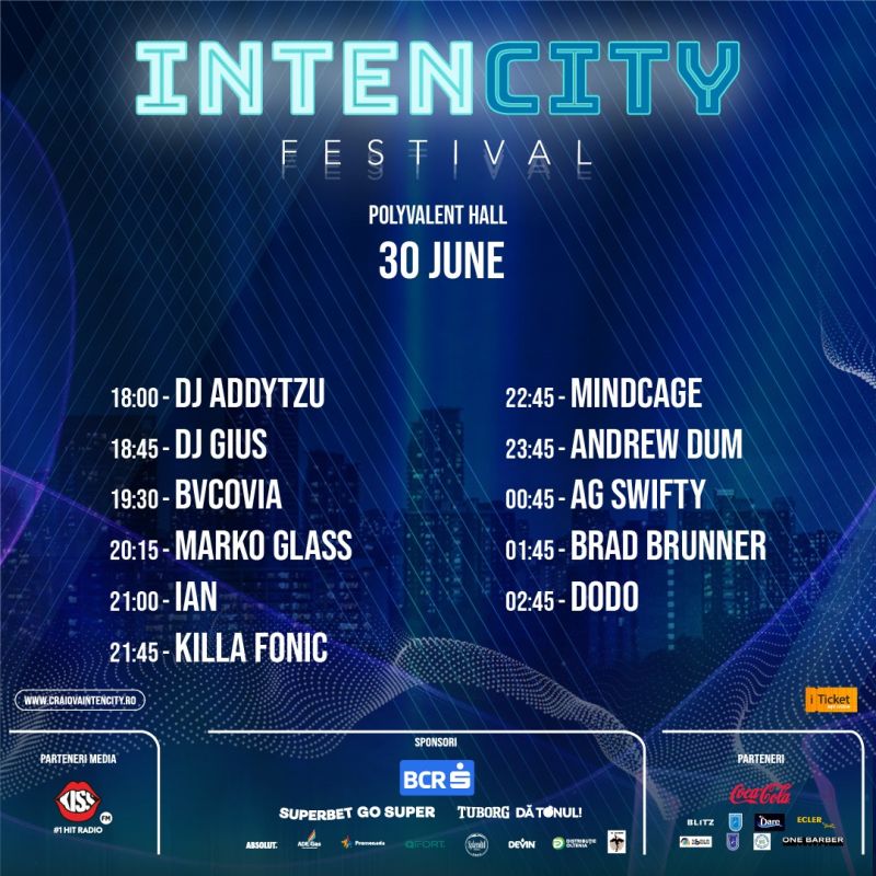 Cea de-a doua ediție a Festivalului IntenCity aduce în oraș nume renumite din muzica internațională. Festivalul va avea loc în intervalul 30 iunie – 2 iulie, pe două scene amplasate în Complexul Sportiv Craiova (Stadionul Ion Oblemenco) și la Sala Polivalentă.