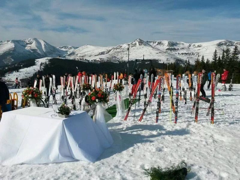 Cristina Mitroiu, fiica patronului pârtiei din Rânca, Vasile Mitroiu, s-a căsătorit sâmbătă cu alesul inimii sale, într-o ţinută nonconformisă şi în aer liber. Ambii au răspuns DA în echipament parţial de schi, îmtr-o atmosferă veselă şi tinerească. De altfel, ceremonia s-a oficiat chiar pe pârtie, iar invitaţii la cununia civilă a celor doi au fost îmbrăcaţi la fel ca cei doi soţi, fiecare având, de altfel, în picioare schiuri sau câte o placă. Cristina a fost însă atracţia momentului, miresica purtând o rochie albă, scurtă, din voal, o geacă şi ochelari de soare.