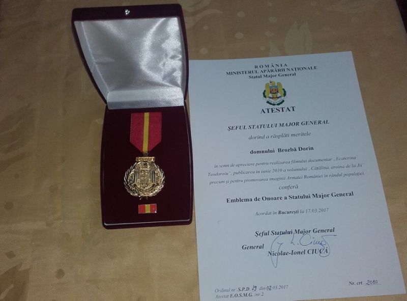 În data de 17 martie, în aula Ministerului Apărării Naționale, s-a desfășurat ședința festivă dedicată împlinirii a o sută de ani de când Regele Ferdinand a acordat Ecaterinei Teodoroiu gradul de sublocotenent, prima femeie ofiţer combatant din Armata Română.film documentar (1)