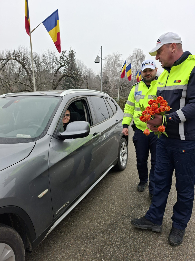 Polițiștii Serviciului Rutier din cadrul IPJ Gorj au păstrat tradiția de a le aduce un zâmbet pe buze doamnelor și domnișoarelor, de 1 Martie. Oamenii legii au marcat începutul primăverii, ieri, printr-o acțiune dedicată participantelor la trafic, oferindu-le flori.