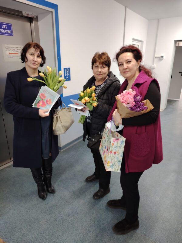 Totodată, am dus flori și cadrelor medicale din mai multe secții, mulțumindu-le pentru dedicarea lor zilnică: Gastroenterologie, Laborator, Policlinică (Gastro și Urologie), Psihologie.