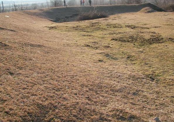 Valul şi agger-ul de pe latura estică prezintă o deviere spre interiorul castrului, determinând o retragere a frontului porţii, de pe acea latură, spre incintă.