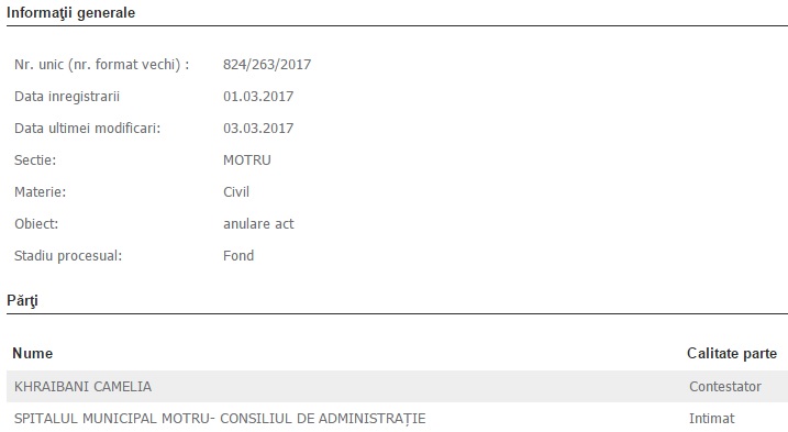 Decizia luată de Consiliul de Administrație al Spitalului Motru de păstrare în funcția de manager interimar a doctorului Alin Efrim și stabilirea unui concurs pentru post i-a adus acestui for de conducere un proces. Actele au fost depuse deja la Judecătoria Motru de către reclamanta Camelia Khraibani, pe data de 1 martie, instanța nestabilind încă o primă înfățișare în acest dosar.