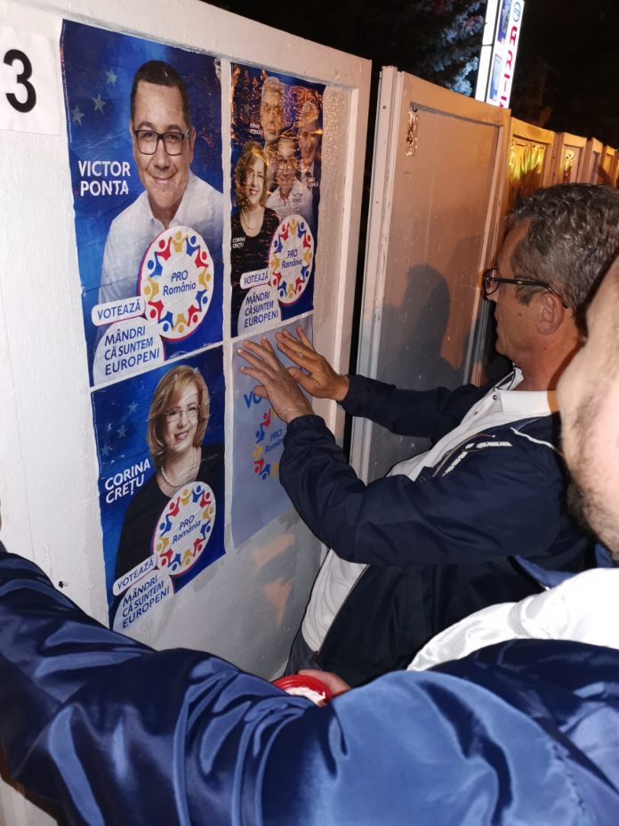 Câteva zeci de membri ai Pro România Gorj au lipit, în această seară, primele afișe electorale în locurile special amenajate din centru municipiului Târgu-Jiu, o dată cu debutul campaniei pentru alegerile europarlamentare din luna mai.