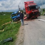 FOTO: Accident la Arcani, după ce şoferul unui tir a intrat pe contrasens