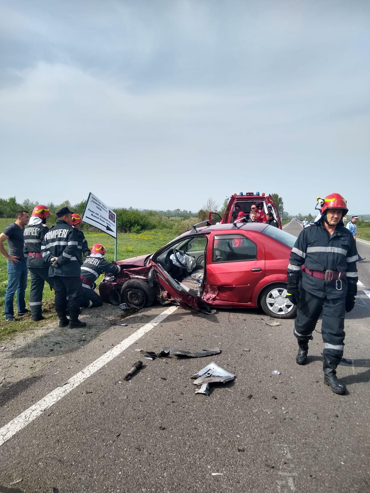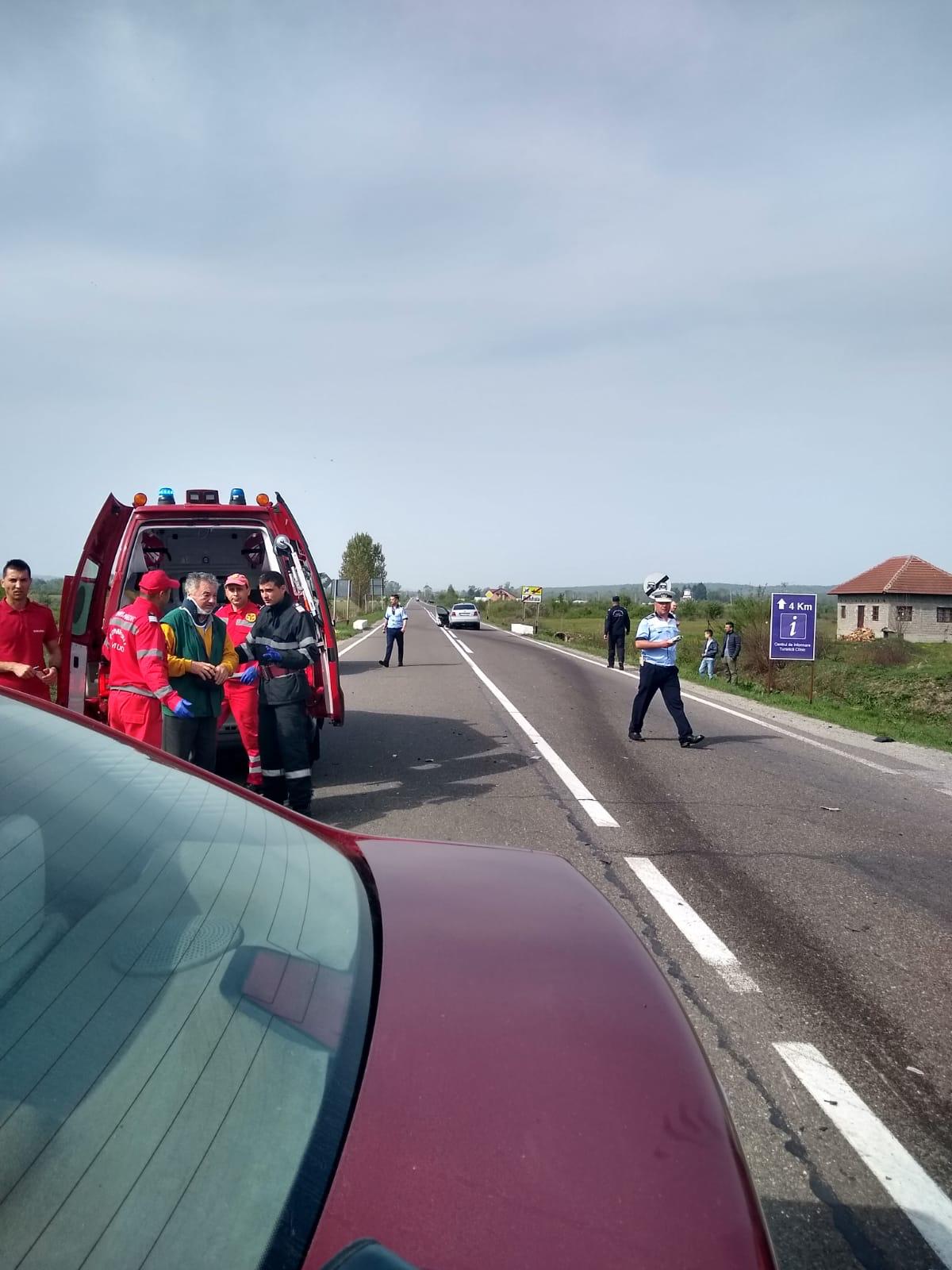 În urma impactului, cei doi șoferi și soția pensionarului au suferit leziuni și au fost transportați la spital pentru acordarea de îngrijiri medicale.