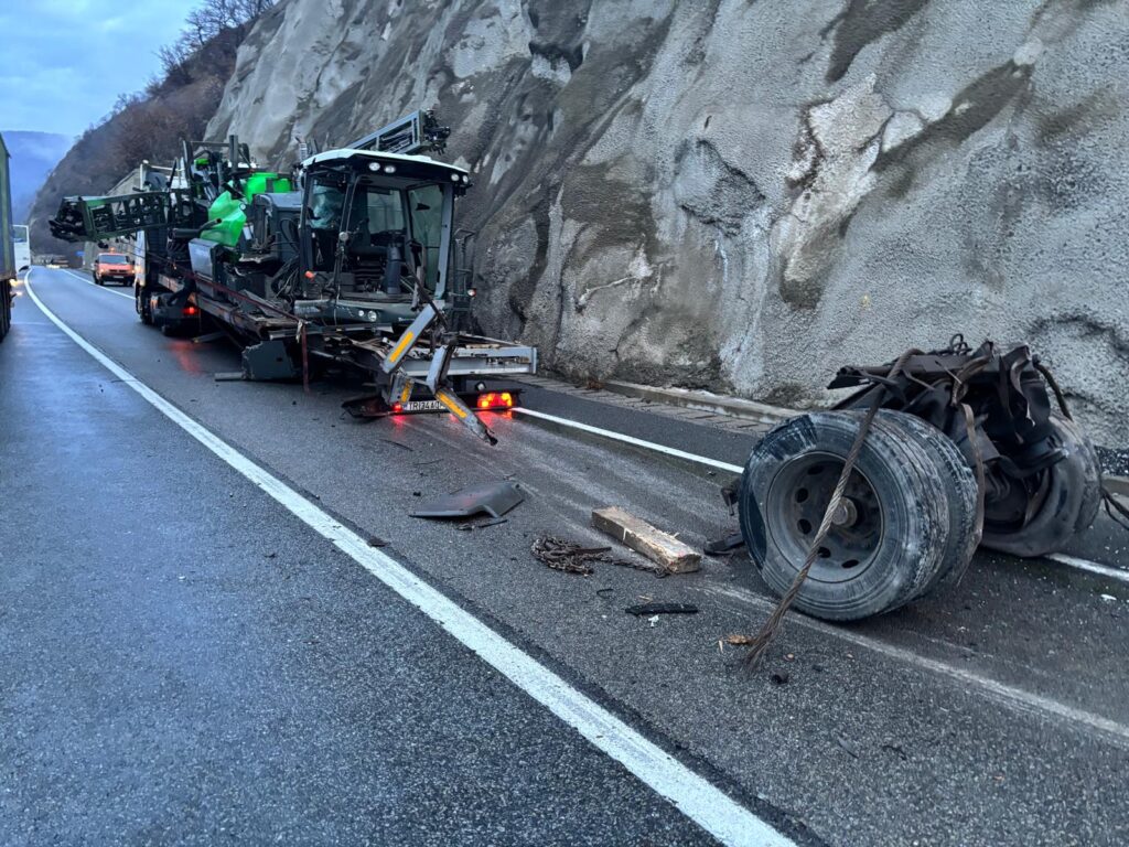 Un accident rutier s-a produs în această dimineață, fiind anunțat printr-un apel de la un participant la trafic. Un autotren, care a făcut explozie la unul dintre cauciucuri, a întrat în parapet, iar în urma impactului, din nefericire, șoferul a murit pe loc. Tragedia s-a produs pe DN6, în zona viaductul Padina Baii. Circulatia este blocată pe ambele sensuri, reprezentanții DRDP Craiova anunțând că aceasta va putea fi reluată în condiții normale, în aproximativ două ore.