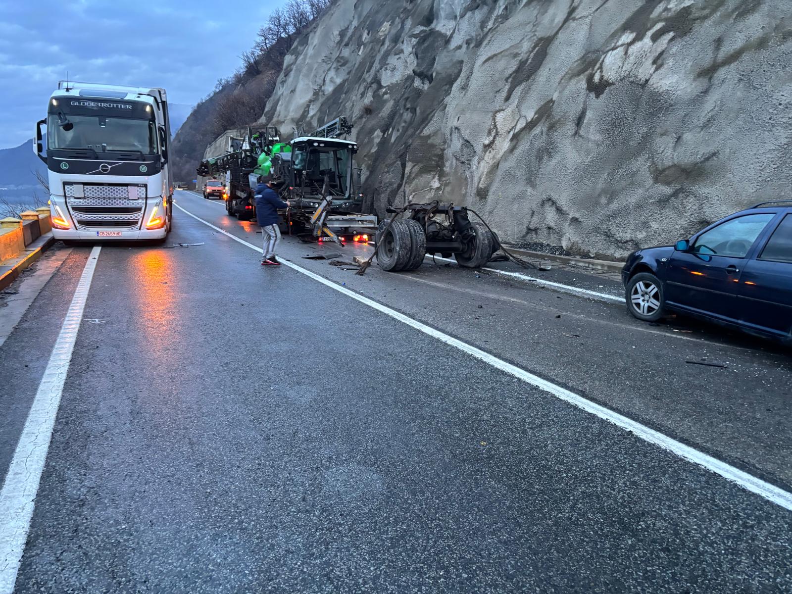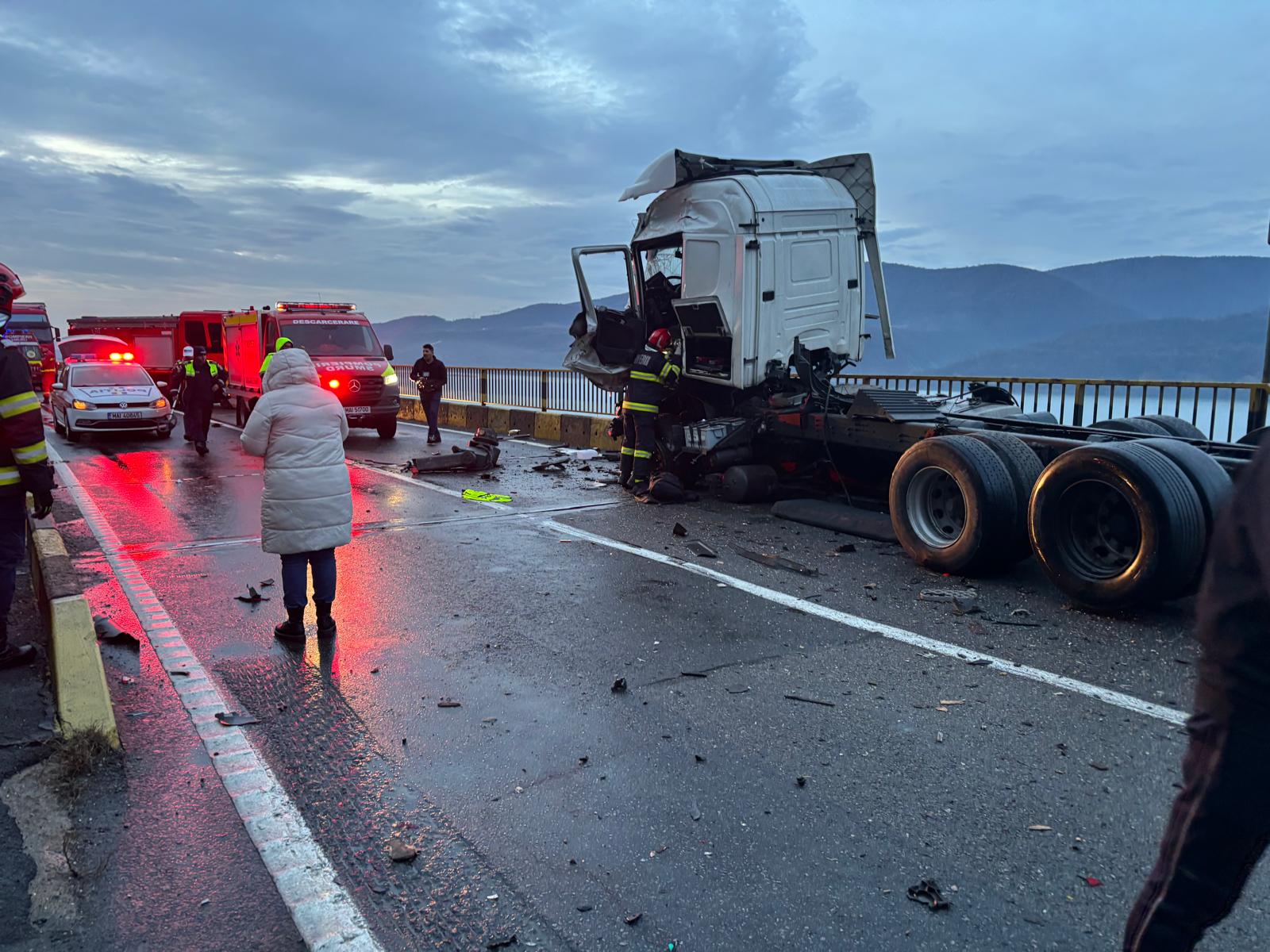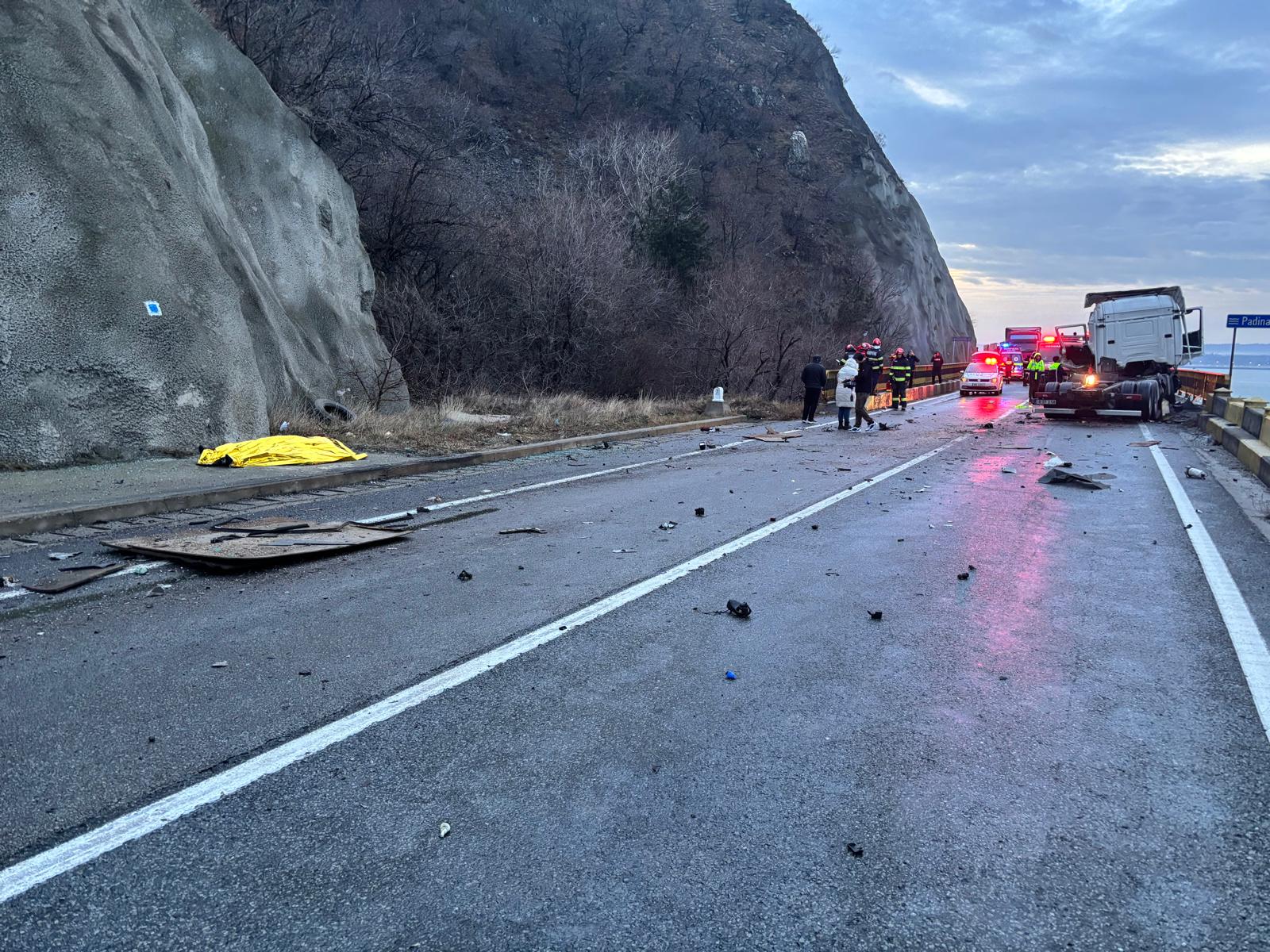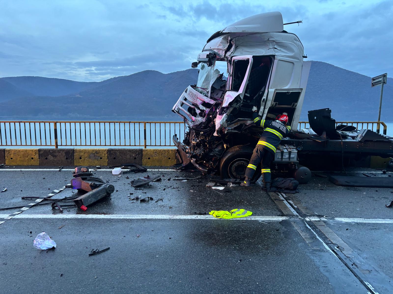 Un accident rutier s-a produs în această dimineață, fiind anunțat printr-un apel de la un participant la trafic. Un autotren, care a făcut explozie la unul dintre cauciucuri, a întrat în parapet, iar în urma impactului, din nefericire, șoferul a murit pe loc. Tragedia s-a produs pe DN6, în zona viaductul Padina Baii. Circulatia este blocată pe ambele sensuri, reprezentanții DRDP Craiova anunțând că aceasta va putea fi reluată în condiții normale, în aproximativ două ore.