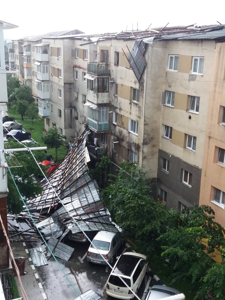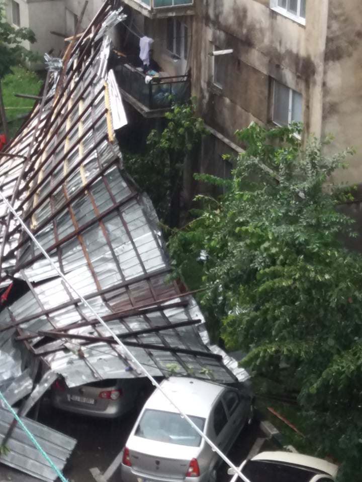 O furtună a făcut ravagii la Târgu-Cărbunești, în urmă cu puțin timp. Acoperișul unui bloc s-a desprins și a căzut pe patru mașini. Primele verificări arată că nu au fost înregistrate victime.