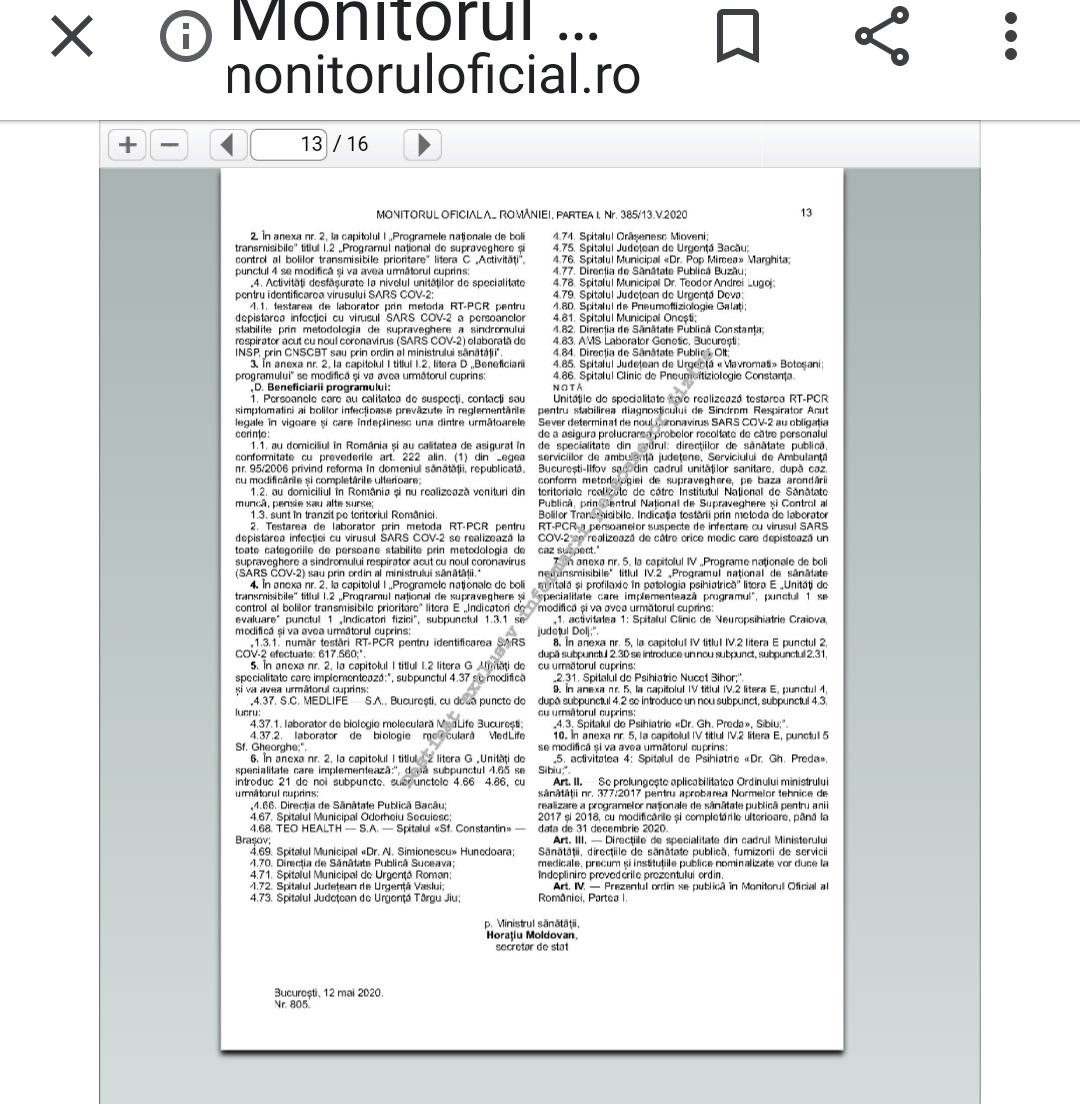 Acreditarea Laboratorului Genetic de la SJU Târgu-Jiu a fost publicată în Monitorul Oficial. Testele făcute de acum în laborator sunt acreditate.