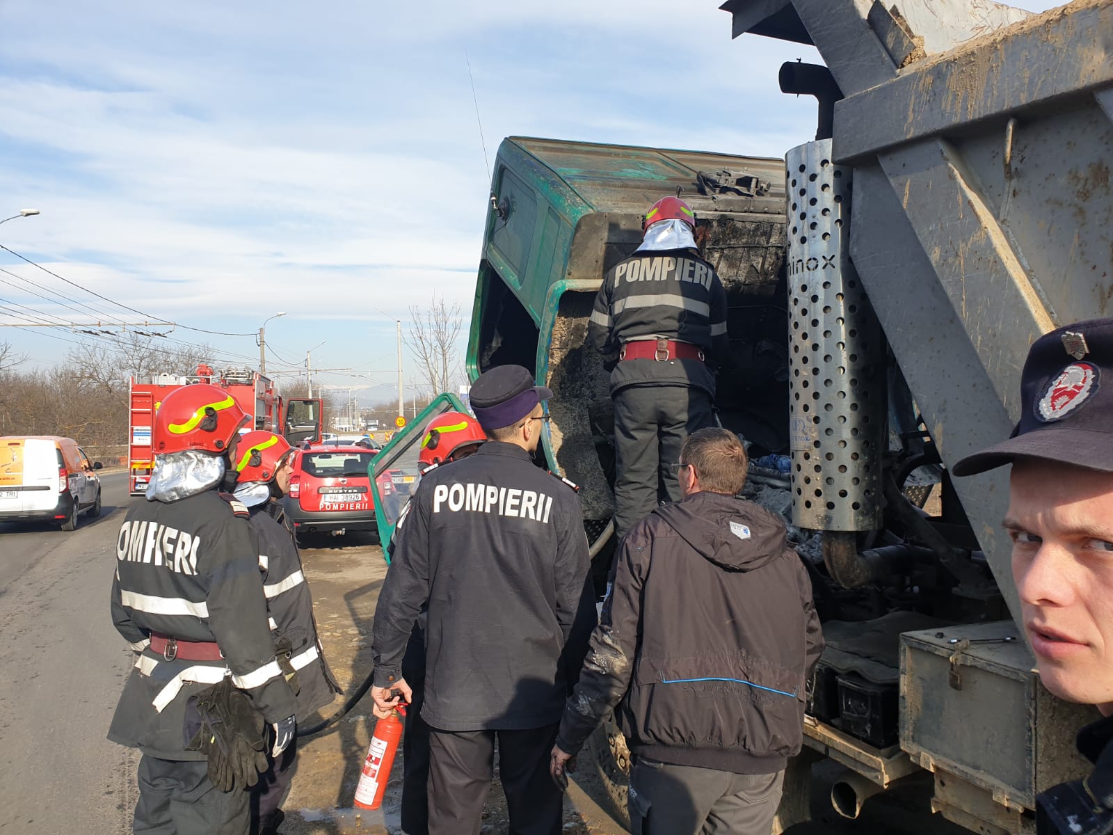 „Cum era normal, băieții noștri au oprit autoturismul, au pus mâna pe stingător și au intervenit pentru stingerea incendiului. La fața locului s-a deplasat și o autospecială de stingere cu apă și spumă din cadrul Detașamentului de Pompieri Târgu-Jiu, dar incendiul fusese lichidat de către cei doi colegi. O coincidență fericită am putea spune, pentru că prezența colegilor noștri în zonă și intervenția lor promptă a făcut ca incendiul să fie stins într-o stare incipientă și nu a distrus întregul camion. Cauza probabilă a incendiului o reprezintă un cablu electic defect sau neizolat corespunzător”, a declarat Florin Chisim, purtătorul de cuvânt al ISU Gorj.