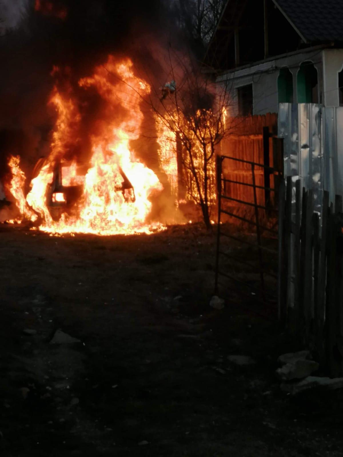 FOTO: Autoturism cuprins de flăcări, la Bâlteni