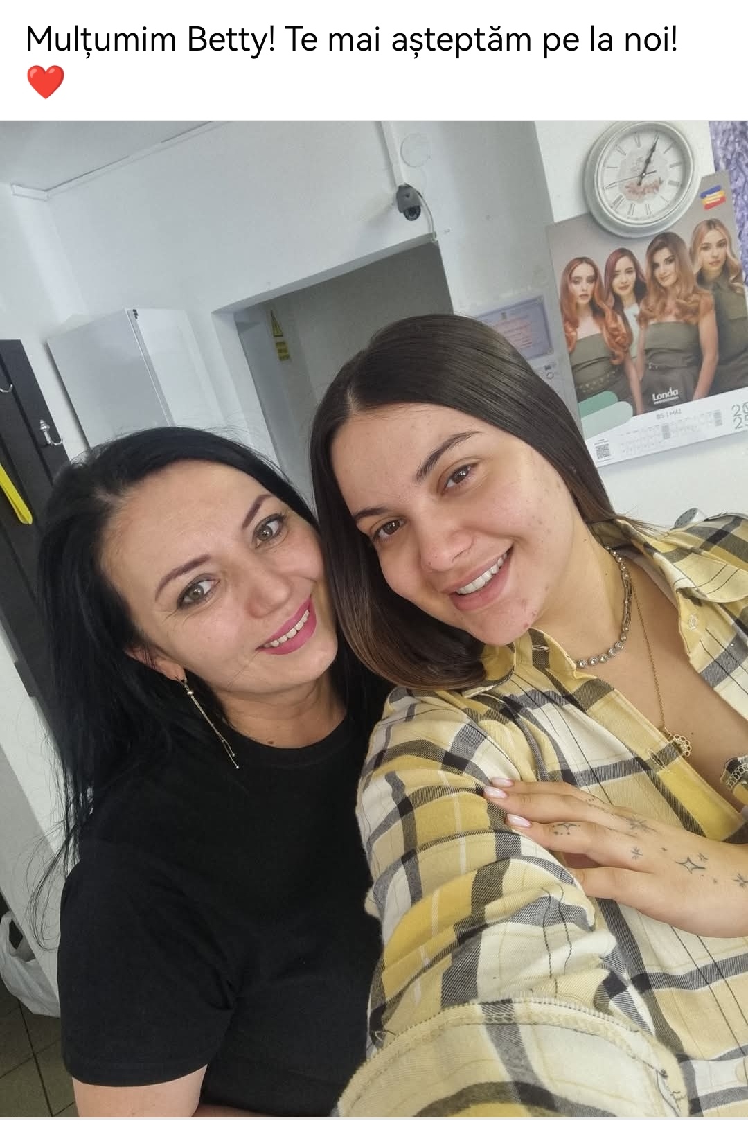 Betty, fiica lui Florin Salam, a trecut astăzi pragul unui salon de înfrumusețare din orașul Târgu-Cărbunești. Una dintre angajate i-a mulțumit pentru vizită și a postat o fotografie cu vedeta, pe Facebook.
