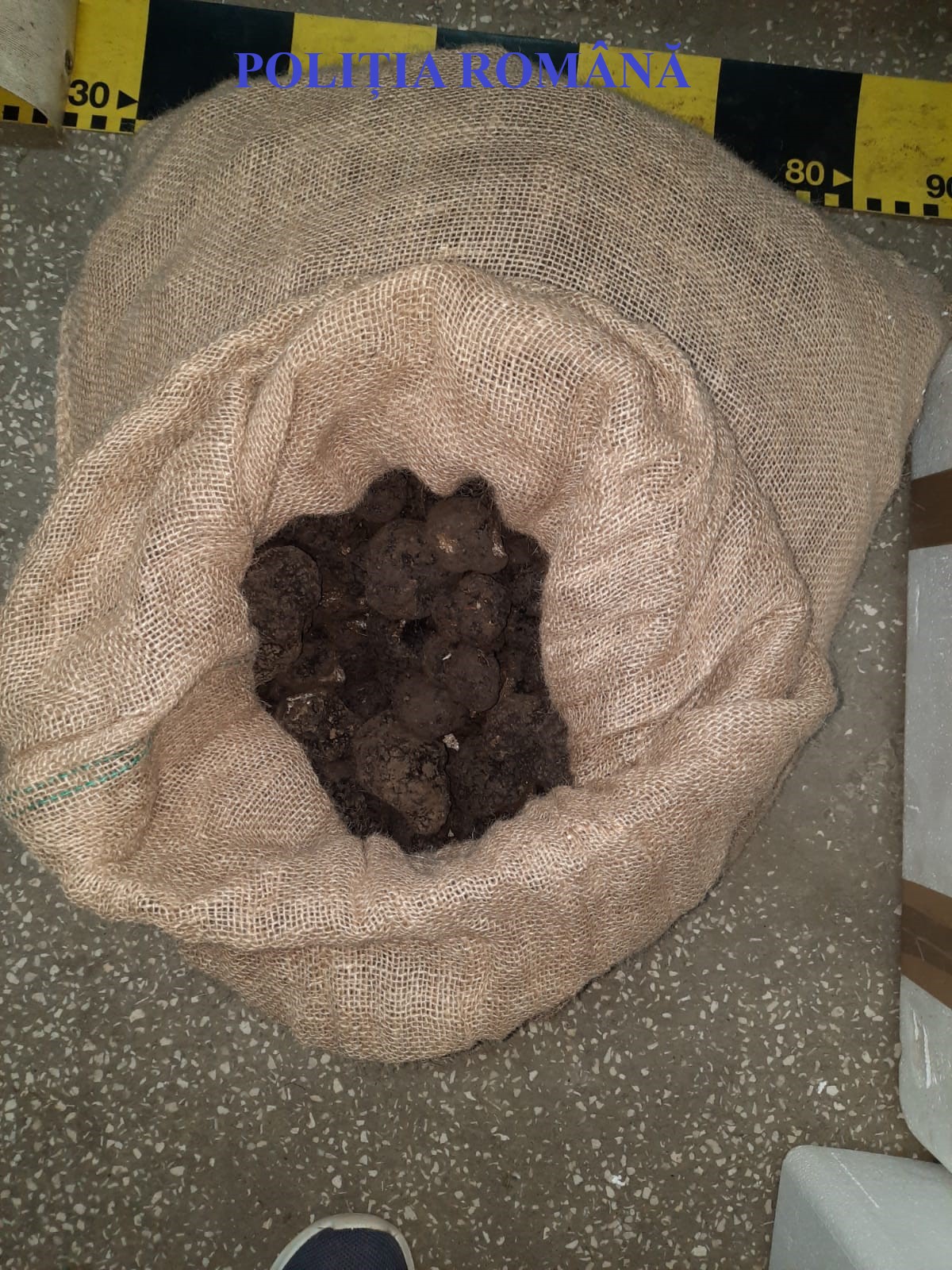 Un bărbat de 42 de ani, din Timişoara, a fost prins de polițiștii gorjeni în timp ce conducea un autoturism pe raza localității Motru, iar cu ocazia controlului efectuat au fost identificate mai multe cutii cu trufe, pentru care conducătorul auto a prezentat o factură emisă la data de 13 noiembrie a.c., pentru cantitatea de 52 kg de trufe.