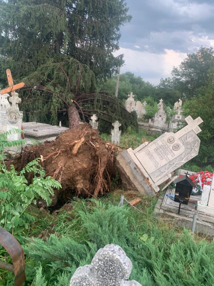 Un molid de mari dimensiuni a fost scos din rădăcini în cimitirul de la Stănești.