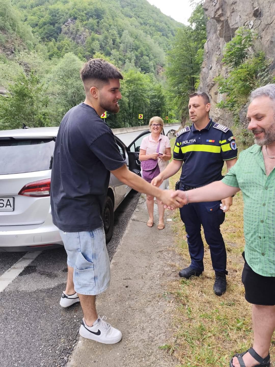 „Aflat în patrulare prin Defileul Jiului, un echipaj din cadrul Postului TF Valea Sadului, format din colegii Marius și Aurelian, a observat un autoturism oprit pe marginea drumului. Fără să fie chemați, au oprit să vadă despre ce este vorba. În mașină se aflau o mamă și fiul ei, în drum spre Cluj, unde trebuiau să prindă un avion. Aveau pană, iar mașina, cumpărată recent, nu avea nici cric, nici roată de rezervă. Cu sprijinul colegului Ionuț, de la TF Petroșani, care a adus o roată de schimb, polițiștii au rezolvat problema rapid, iar cei doi și-au putut continua călătoria. Poliția nu intervine doar atunci când e strigată — uneori, suntem acolo chiar înainte să fie nevoie să ne chemi!”, au mai scris reprezentanții IPJ Gorj.