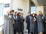 Peste 50 de grefieri de la Judecătoria Târgu-Jiu și Tribunalul Gorj au protestat astăzi, la ora 11.00, timp de o oră, nemulţumiţi de prevederile noii legi a salarizării. Ședinţele de judecată nu au fost însă suspendate. ”Au participat în jur de 50 de grefieri de ședință. Principala nemulțumire este referitoare la coeficienții de salarizare din noua lege de salarizare unitară. Noi am făcut acest protest, pentru a corela acești indici la o valoare reală, având în vedere incompatibilitățile grefierului de ședință, care sunt ca și ale judecătorului, nu mai are practic voie să presteze alte activități, în afară de cele din învățământul universitar. Nu au fost afectate ședințele de judecată, nu au fost afectate serviciile de relații cu publicul, arhivă, registratură, executări penale. A fost un protest spotant, în fața instituției, între orele 11.00-12.00”, a declarat pentru Gorjeanul, Ion Păun, grefier şef în cadrul Judecătoriei Târgu-Jiu.