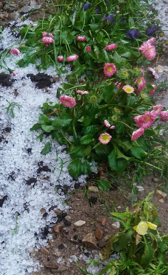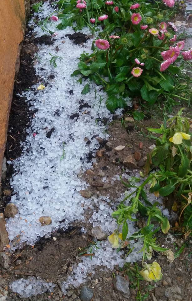Ploaia de acum o oră nu a venit curată la Bălești. Prin grădinile localnicilor s-a depus un strat de grindină care le-a afectat, iar, culturile.