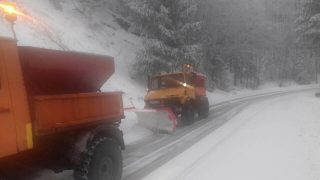 FOTO: Iarnă în Gorj! Drumarii, în acţiune pe arterele rutiere naţionale