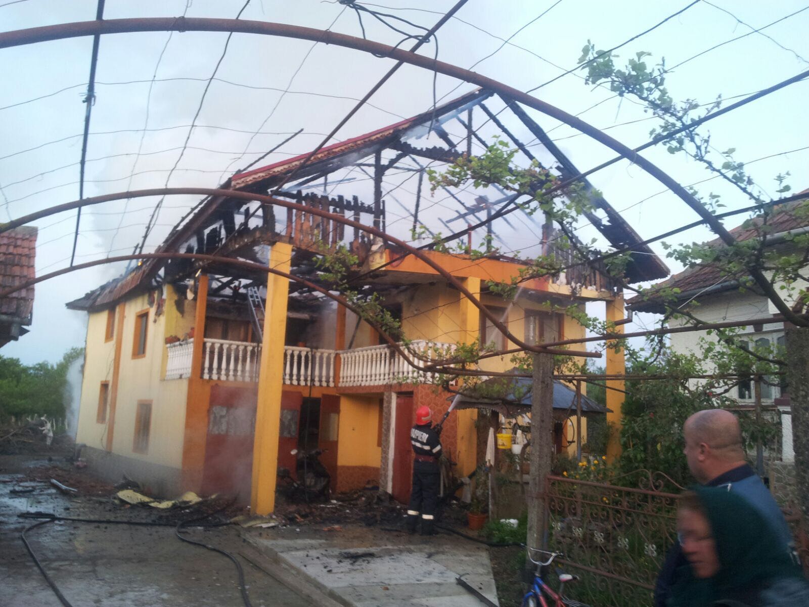 Acoperişul unei case din satul Căleşti a luat foc, în această dimineață, cauza probabilă fiind efectul termic al curentului electric generat de un boiler lăsat sub tensiune.