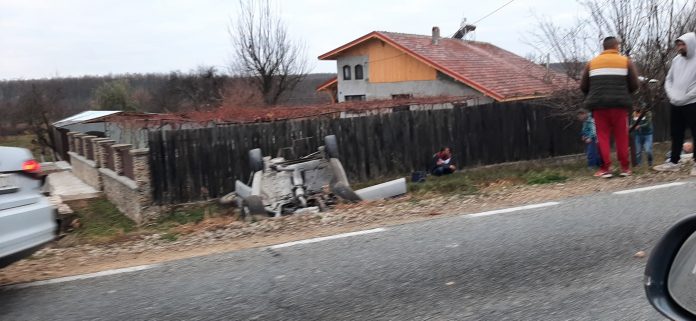 Un accident de circulație, aparent grav, a avut loc în această dimineață pe raza comunei Scoarța, în zona dezmembrărilor auto. Un autoturism a ajuns în șanț, răsturnat pe plafon, în timp ce un bărbat rănit se afla lângă mașină.