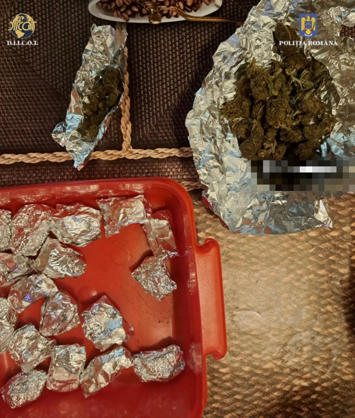 Astfel, au fost descoperite și ridicate aproximativ 40 de grame de canabis, porționate în 19 pachete din staniol, un dispozitiv de mărunțit tip grinder, două cântare de precizie, țigări confecționate artizanal, consumate parțial și 3 telefoane mobile.