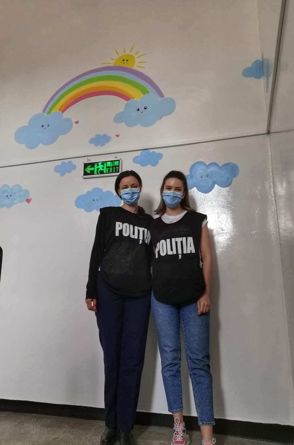 Polițiști din cadrul Biroului de Analiză și Prevenire a Criminalității Gorj au desfășurat activități de pictură murală la sediul D.G.A.S.P.C. Gorj – Centrul de servicii de protecție a cuplului mamă-copil, din municipiul Târgu-Jiu, pentru a face o bucurie copiilor care locuiesc în centru, împreună cu mamele lor.