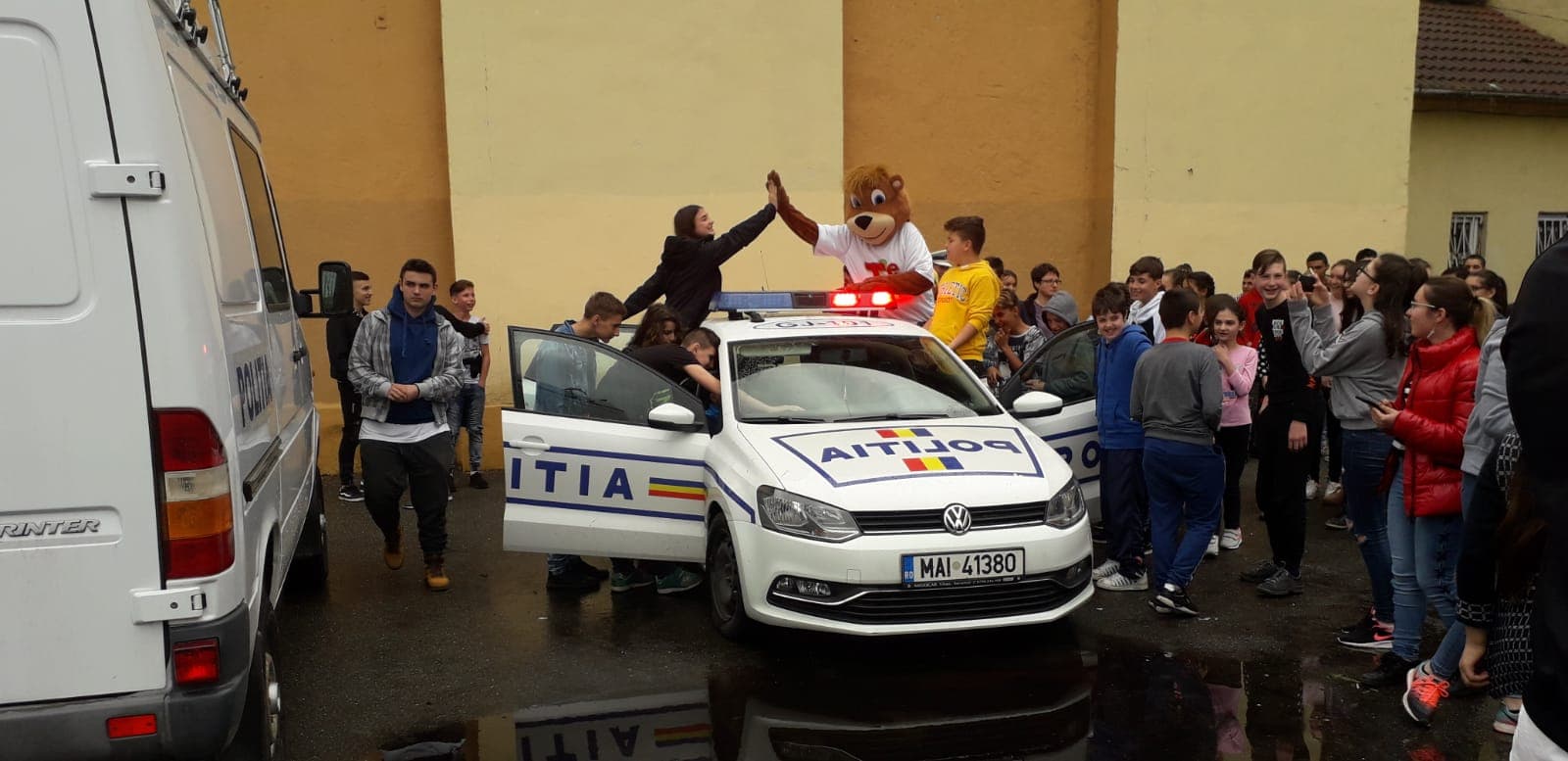 FOTO: Poliția, cu ursulețul ”Tedi” la Colegiul Tehnic Mătăsari