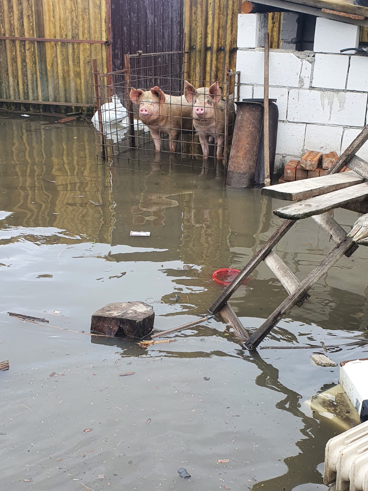 Locuitorii afectați spun că le sunt curțile inundate iar apa le-a intrat și în interiorul caselor, dar cei cărora le cer sprijin le răspund, în schimb, doar în doi peri.