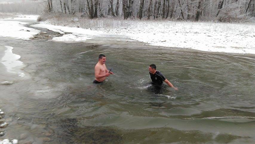 Doi tineri din județul Gorj s-au aruncat, astăzi, în apele reci ale râurilor Jaleș și Gilort, pentru a recupera crucile aruncate de preoți, conform tradiției, de Bobotează. La Bălești, un singur bărbat, în vârstă de 29 de ani, din Stolojani, a intrat în râu pentru a prinde obiectul din lemn, iar la Bengești-Ciocadia, crucea a fost recuperată de Marian Ciungu, un tânăr de 30 de ani, care respectă tradiția de zece ani. ”Merg acasă şi fac un duş fierbinte, după care sunt ca nou. Mă simt foarte bine, apa e un pic rece, dar nu este o problemă, pentru că nu m-am îmbolnăvit niciodată de când prind crucea”, a declarat Marian Ciungu. Cei doi au fost recompensați de preoți, iar curajosul de la Bălești va primi un premiu și din partea autorităților locale.