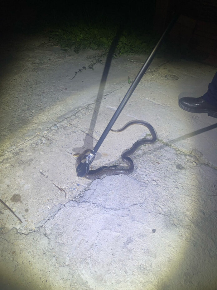 Un localnic din Ciuperceni a sunat la 112, ieri, solicitând ajutorul jandarmilor pentru prinderea unui șarpe de un metru și jumătate, descoperit într-o magazie.