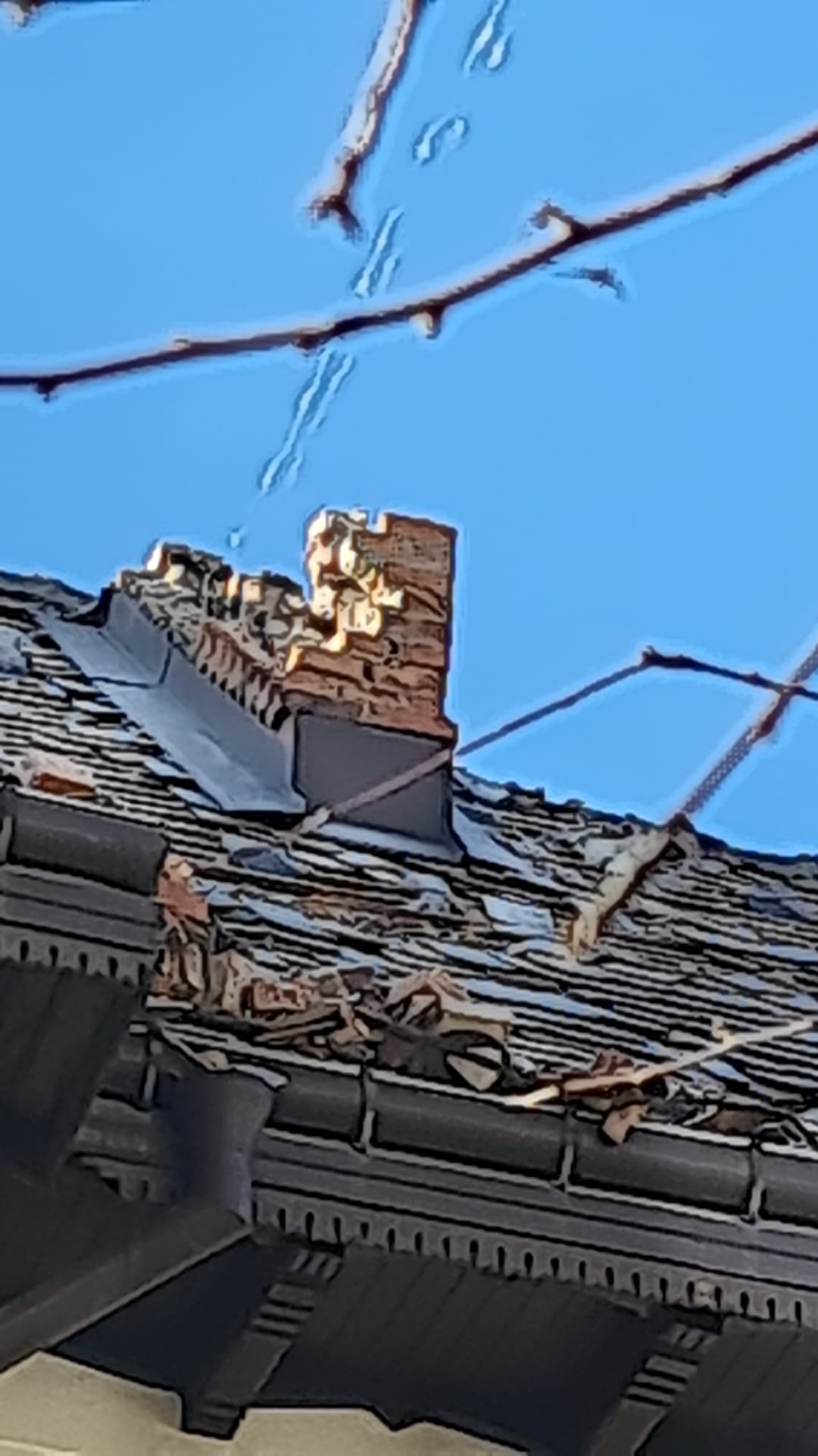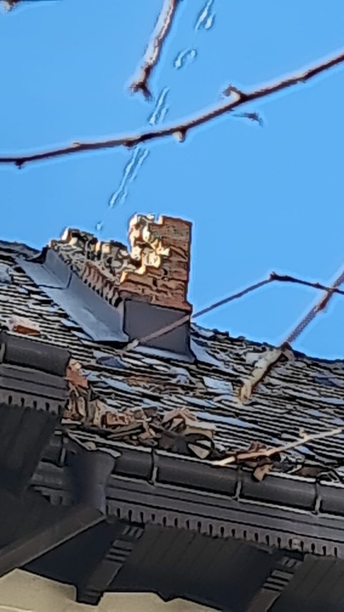 Coșurile de fum ale Primăriei Târgu Jiu au căzut peste mașinile aflate în apropiere. Cărămizi și tencuială au căzute de pe mai multe clădiri din municipiu.