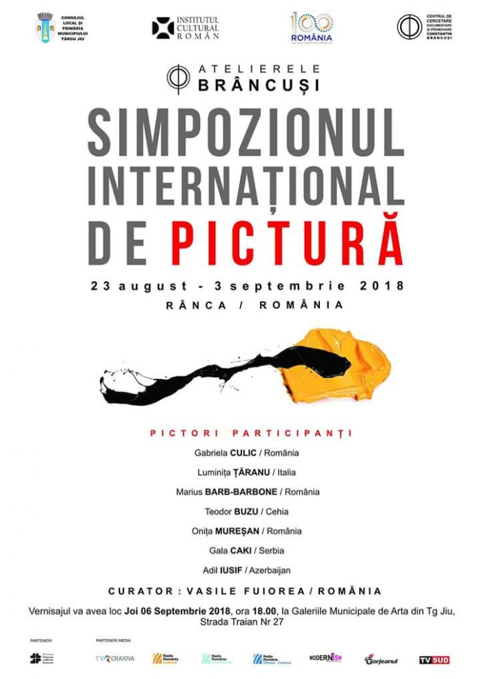 Joi, 06 Septembrie 2018, ora 18.00, la Galeriile Municipale de Artă din Târgu Jiu, va avea loc vernisajul expoziției Simpozionului Internațional de Pictură „Atelierele Brâncusi”Rânca/ România/Ediția 2018. Artiști participanți :Adil Yusif (Azerbaidjan) Gala Caki(Serbia) Luminița Țăranu (Italia) Teodor Buzu( Cehia) Marius Barb Barbone ( România) Vasile Fuiorea (România) Gabriela Culic (România) Onita Mureșan ( România) Curator :Vasile Fuiorea.