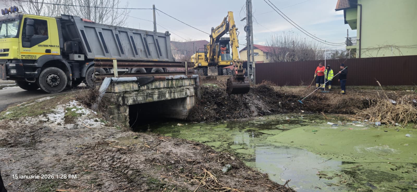 În contextul activităților cuprinse în planul de măsuri stabilit, în cadrul ședinței de lucru, convocată luni, 12.01.2026 de către prefectul Șerban Predescu, la care au participat primarul Marcel Romanescu și reprezentanții Edilitara, Aparegio,CFR, ISU Gorj, a fost declanșată, ieri, o amplă acțiune de ecologizare a canalului de colectare a apelor pluviale din partea de nord a orașului (hodinau 1), din zona Pandurașu, anunță Prefectura Gorj.