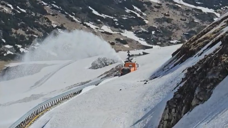 Utilajele de deszăpezire pe Transalpina acționează și astăzipentru îndepărtarea zăpezii de pe partea carosabilă, până în zonele cunoscute ca fiind mai problematice.
