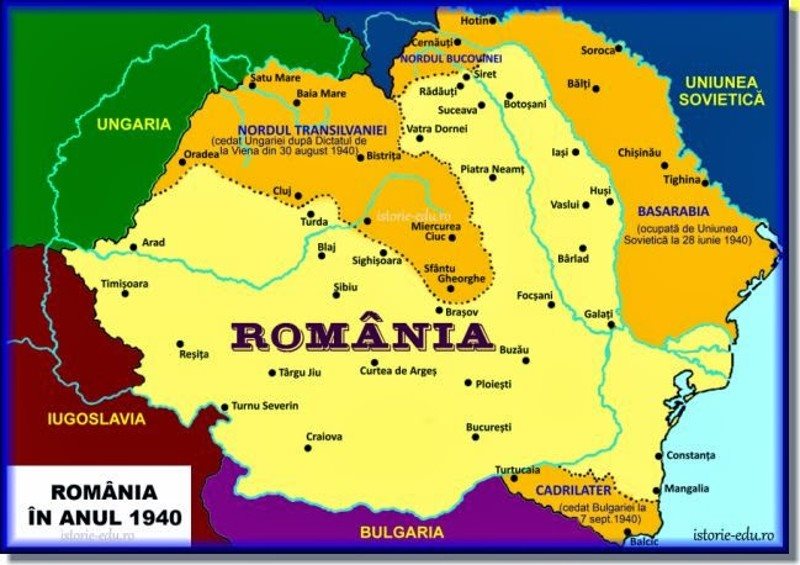 Începutul celui de-Al Doilea Război Mondial a adus numai necazuri României, care era în poziția de neutralitate. În vara anului 1940, prin ultimatumul și dictatele consecutive pactului Hitler-Stalin, România a fost silită să cedeze Uniunii Sovietice: Bucovina de Nord, Ținutul Herței și Basarabia; Ungariei: Transilvania de Nord, iar Bulgariei: Dobrogea de Sud (la sud de linia Ostrov-Vama Veche).