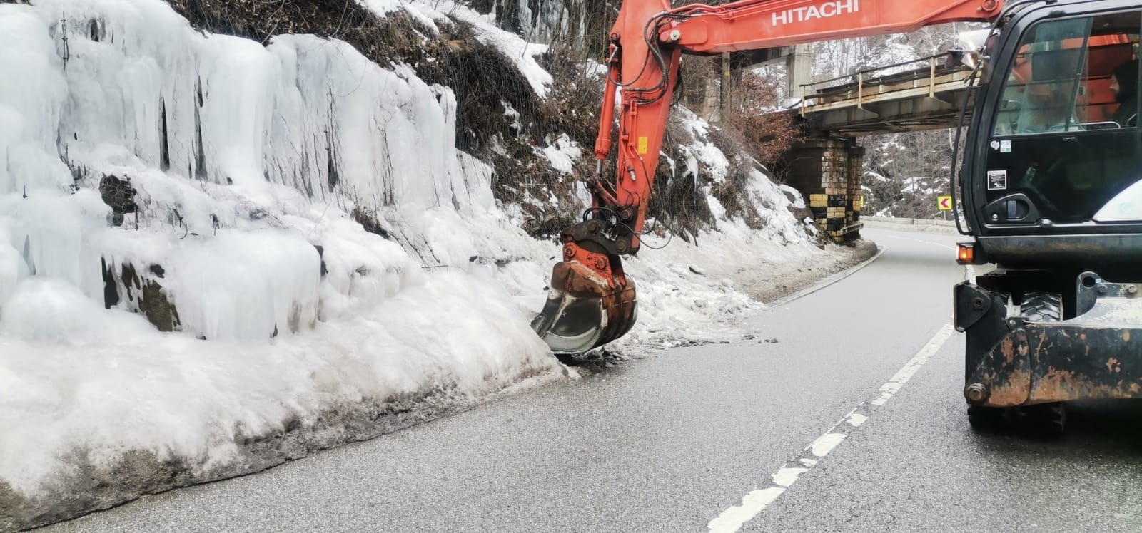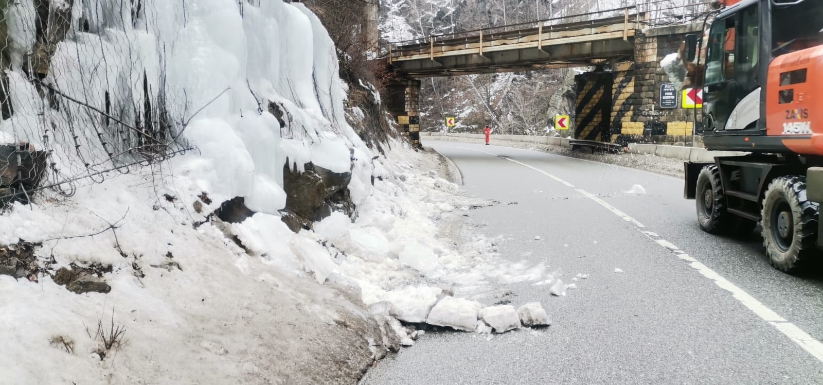 Se acționează pentru desprinderea gheții și asigurarea zonei, cu restricții temporare de trafic.