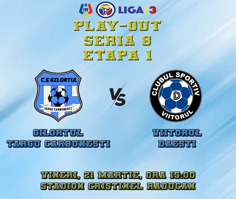 Gilortul Târgu Cărbunești debutează în play-out-ul Seriei 8 din Liga 3 astăzi, cu un meci împotriva formației Viitorul Dăești. Partida se joacă pe Stadionul ,,Cristinel Răducan”, de la ora 15.00. După o înfrângere și un egal în meciurile oficiale din 2025, antrenorul Alex Stoica încearcă să-și păstreze optimismul. Deși se confruntă și acum cu probleme de lot, tehnicianul gazdelor crede că poate obține primul succes al anului.
