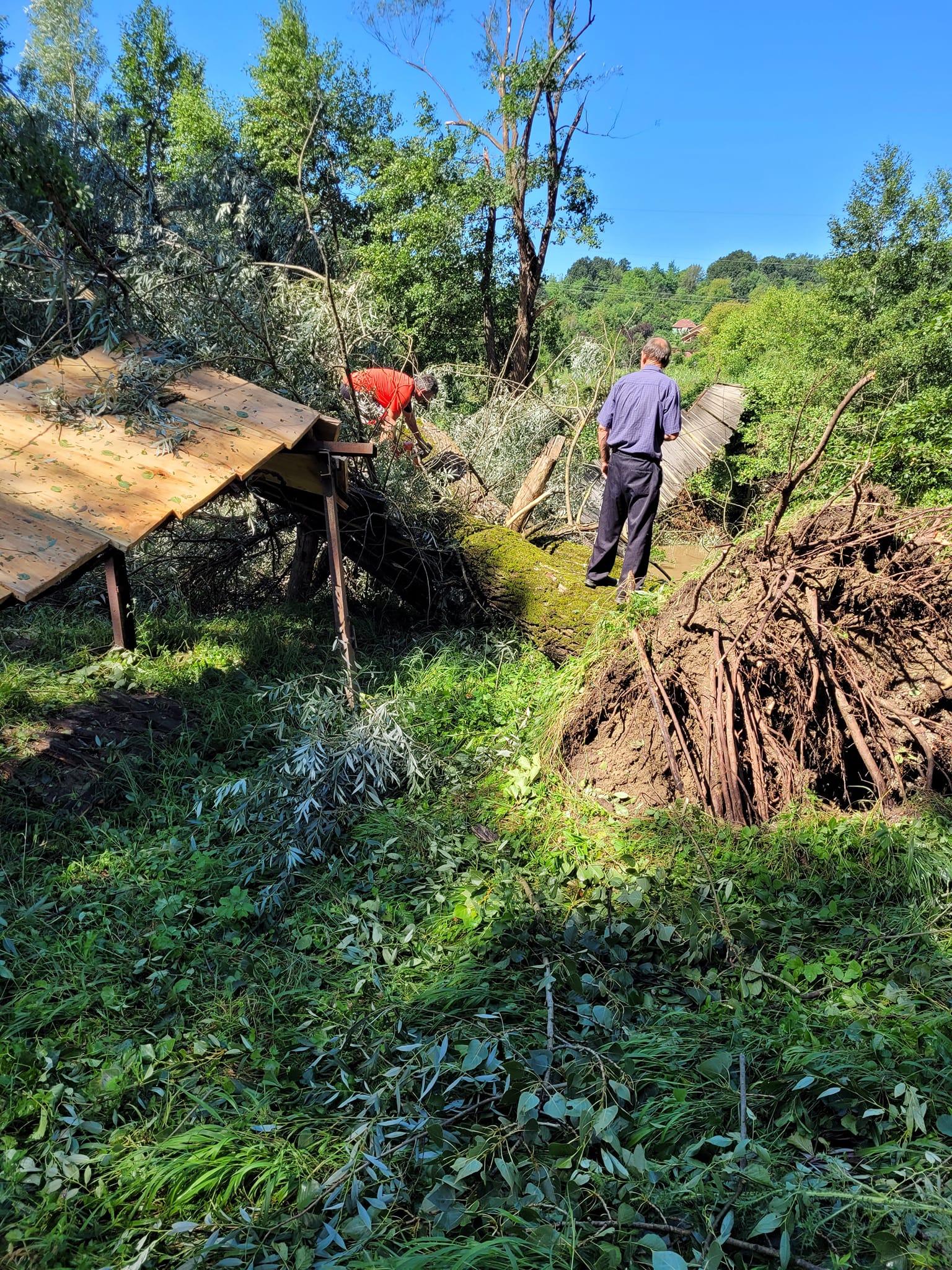 Glogova: Copaci smulși din rădăcini, punte pietonală impracticabilă