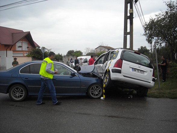 Picture 594_587_440_90Tânăra aflată la volan le-a declarat poliţiştilor că se deplasa foarte încet şi a observat BMW-ul apropiindu-se, dar a crezut că, fiind vorba despre alaiul unei nunţi, cel în cauză va opri. BMW-ul a izbit violent Peugeot-ul în partea laterală stângă, a intrat efectiv sub el şi l-a împins într-un stâlp de iluminat public. Mai multe persoane din Peugeot, inclusiv un copil, au fost transportate la spital cu răni, relatează presa centrală.