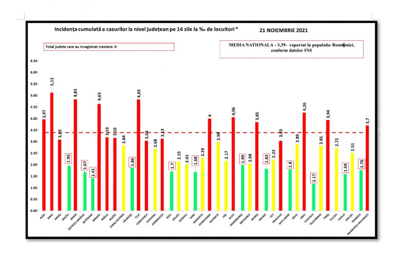 La nivel național, 12 județe se află în scenariul verde. Este vorba de Bacău, Călărași, Maramureș, Neamț, Vrancea Bistrița-Năsăud, Suceava, Vaslui, Botoșani, Dolj, Gorj și Satu Mare.