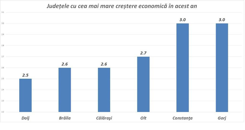 Gorjul se află în topul județelor cu cea mai mare creștere economică în 2025, conform datelor raportate de Comisia Națională de Strategie și Prognoză (CNSP). Anunțul a fost făcut de președintele Consiliului Județean Gorj, Cosmin Popescu, care susține că județul înregistrează o creștere de 3,0%, la același nivel cu Constanța.