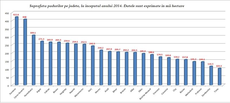 Chiar dacă în ultimul an suprafaţa împădurită a crescut, judeţele Mureş, Vrancea şi Gorj sunt cele în care suprafeţele pădurilor au scăzut cel mai mult faţă de anul 2008. Astfel, Mureşul a înregistrat o scădere cu peste 5.000 de hectare de pădure, în vreme ce în Vrancea s-au tăiat peste 3.000 de hectare, iar în Gorj alte 2.100 de hectare. În topul tăierilor de pădure în perioada 2008 – 2014, Alba şi Maramureş sunt următoarele judeţe, cu câte peste o mie de hectare tăiate.